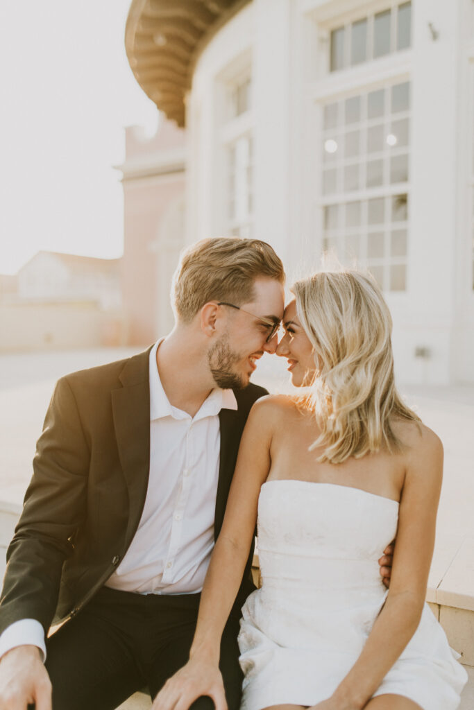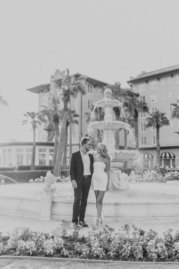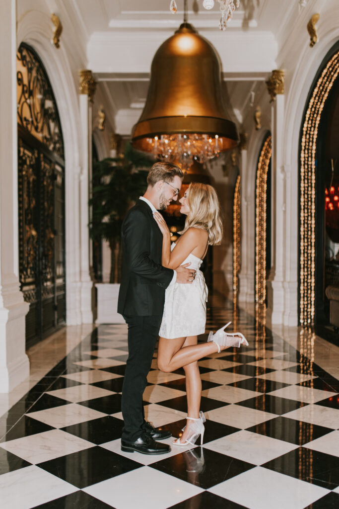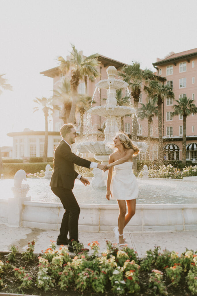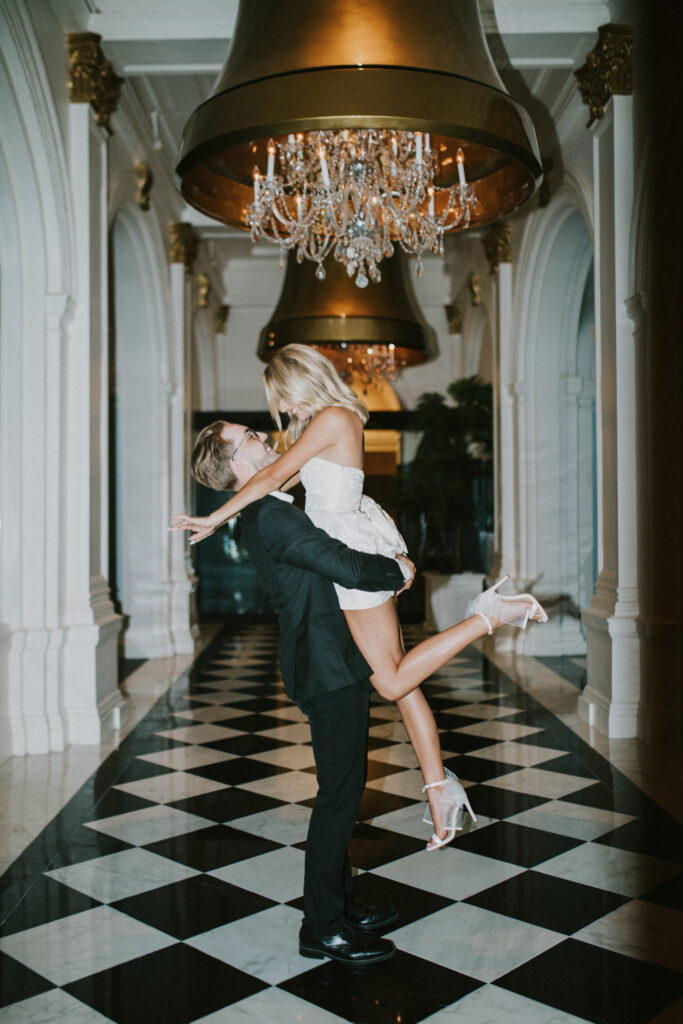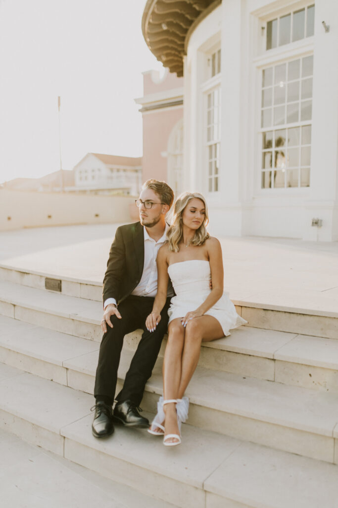 Joey & Paris’ engagement session at The Grand Galvez in Galveston, Texas was the perfect blend of classic elegance and playful, just-engaged joy. The historic charm of this iconic beachfront hotel paired beautifully with the dreamy coastal light that Galveston is known for. From the soft glow spilling through the grand windows to the golden-hour sunshine wrapping around the balconies and palm-lined grounds, the lighting was nothing short of magic. Every moment felt effortless, romantic, and timeless—proof that Galveston engagement sessions offer some of the most stunning natural light on the Texas coast.